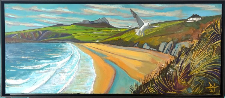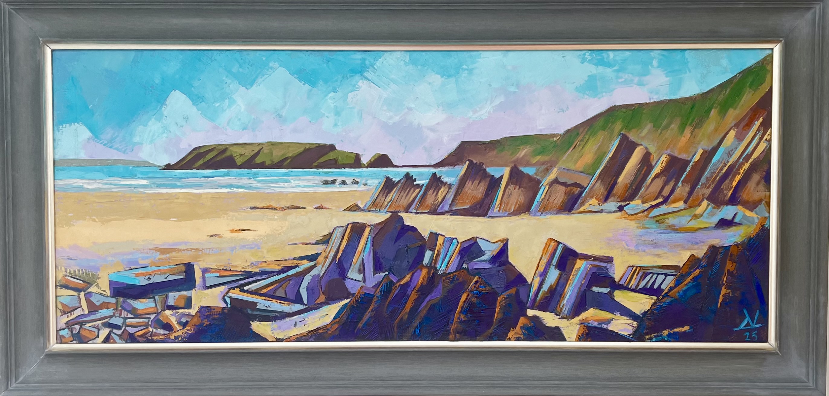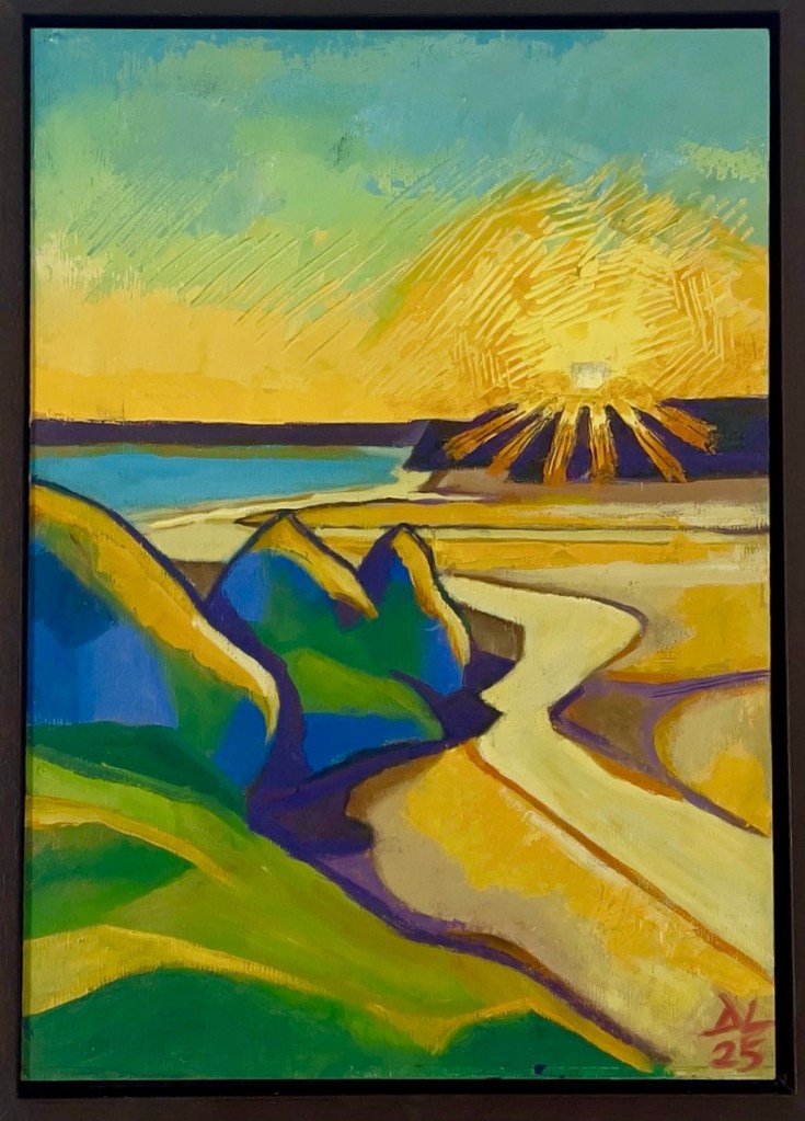 Wales with it’s wild coastlines and shifting skies, provides endless inspiration. The challenge lies not in replicating what i see, but in interpreting it. My paintings are as much about feeling as they are about sight, inviting the viewer to experience a place through colour and form rather than strict depiction.