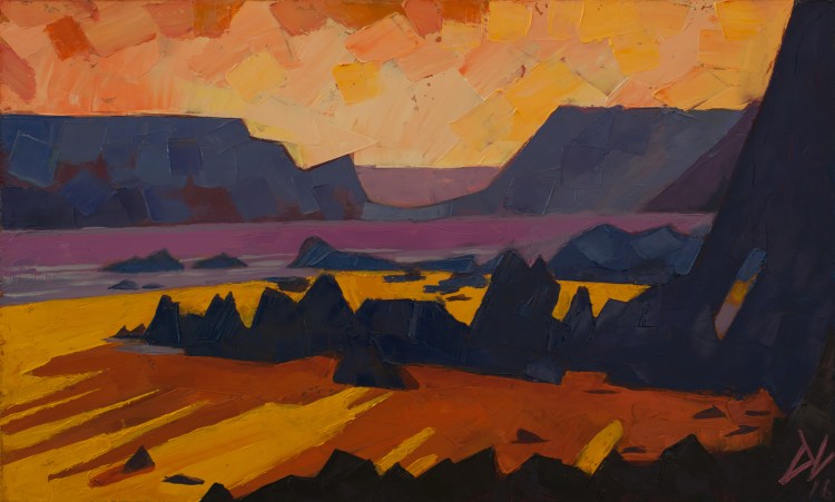 75cm x 35cm oil on hardboard Marloes sunset shadows