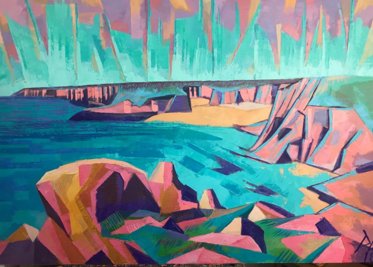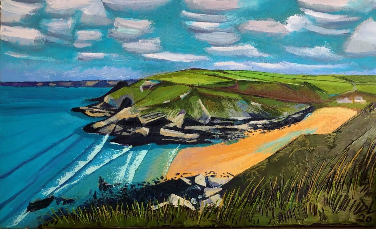 Marloes Tide lineThis is a Picture of Marloe’s Sands a beach on the Pembrokshire coast, Wales. The painting is a beautiful depiction of the beach using vibrant colours.