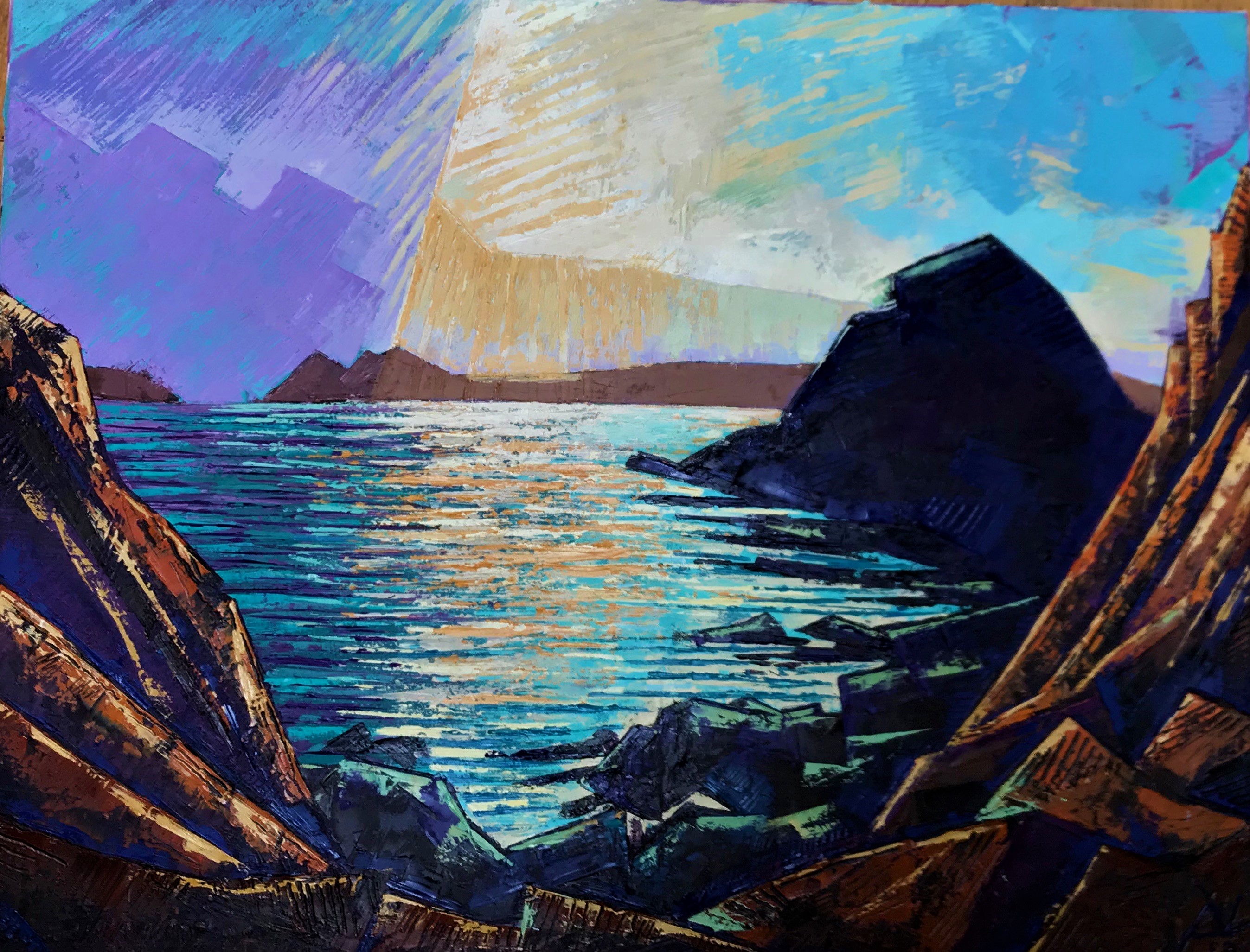 100cm x 60cm Oil on Canvas £600 framed This picture is from St Annes headland pembrokeshire,Wales. I experimented with colour and contrast creating an original concept.